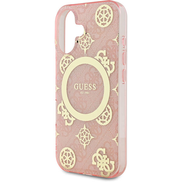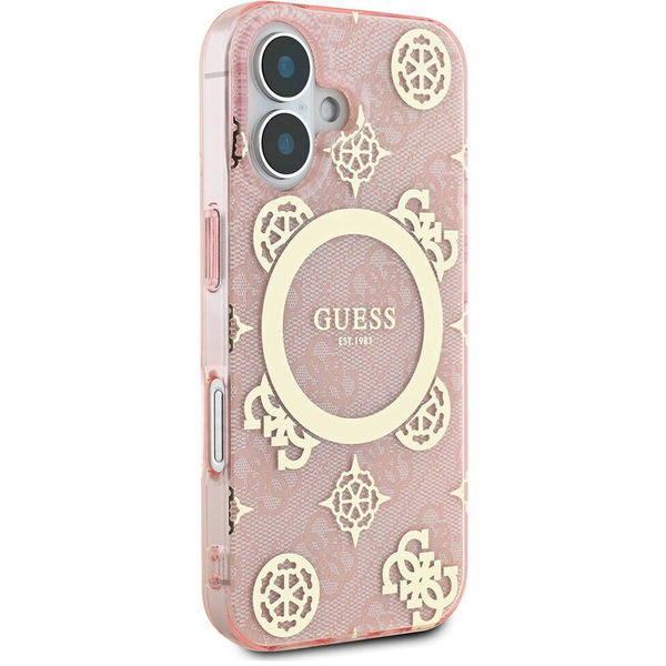 Accesoriu Guess - IML Peony On 4G Background MagSafe (GUHMP16SH4PYEEP) - iPhone 16 - Pink pentru Apple iPhone 16
