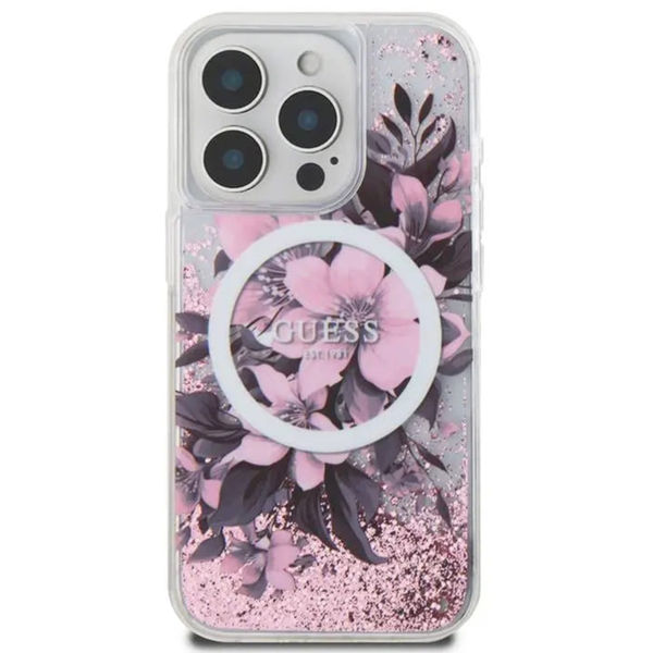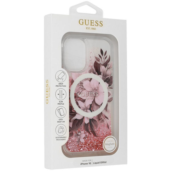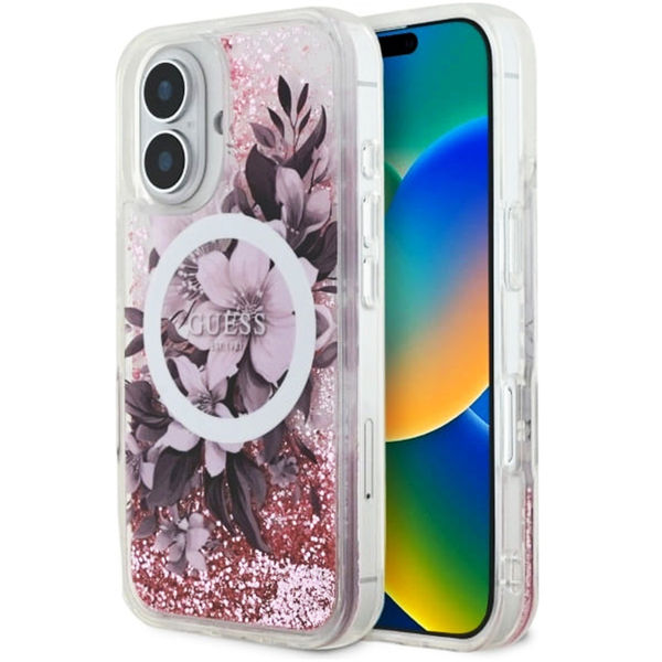 Guess - Liquid Glitter Flower MagSafe (GUHMP16SLFMWTP) - iPhone 16 - Pink Apple iPhone 16