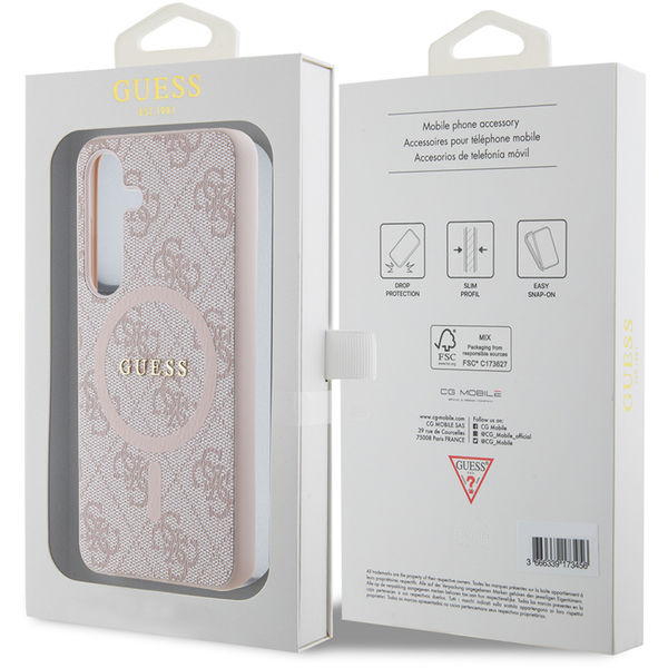 Accesoriu Guess - 4G Collection Leather MagSafe (GUHMS24SG4GFRP) - Samsung Galaxy S24 - Pink pentru Samsung Galaxy S24