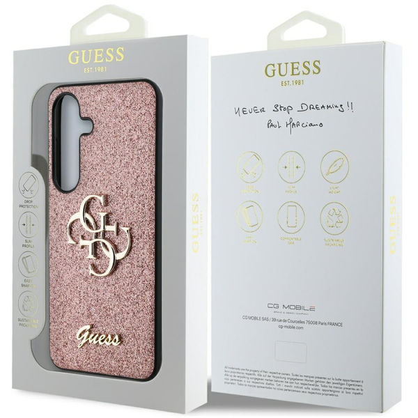 Accesoriu Guess - Glitter Script Big 4G Logo (GUHCS25SHG4SGP) - Samsung Galaxy S25 - Pink pentru Samsung Galaxy S25