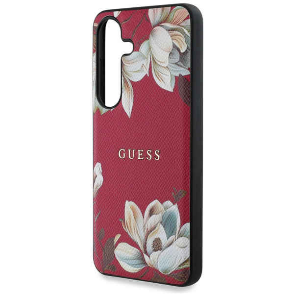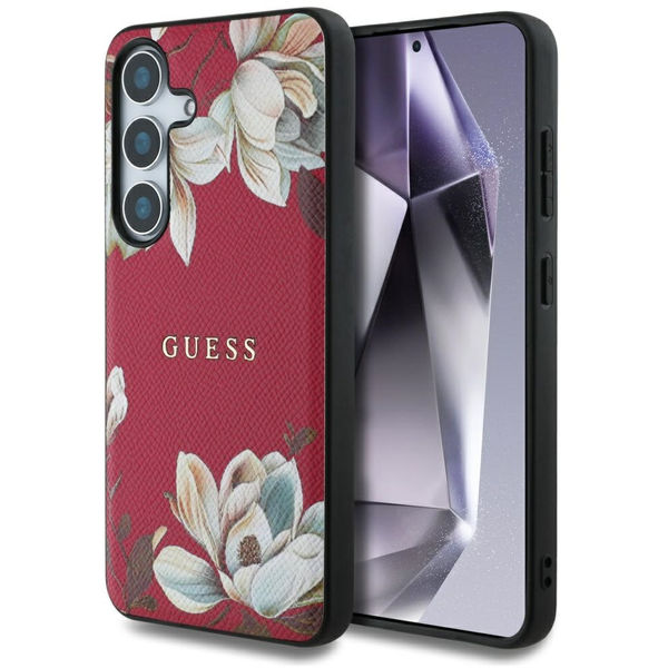 Accesoriu Guess - Grained Flowers MagSafe (GUHMS25SPGNMPLMF) - Samsung Galaxy S25 - Fuchsia pentru Samsung Galaxy S25