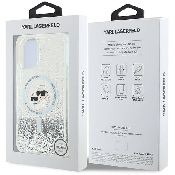 Alte variante pentru Karl Lagerfeld - Glitter Liquid MagSafe (KLHMP16SLGKCSGH) - iPhone 16 - Transparent Karl&Choupette Head