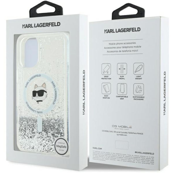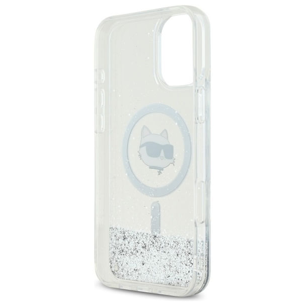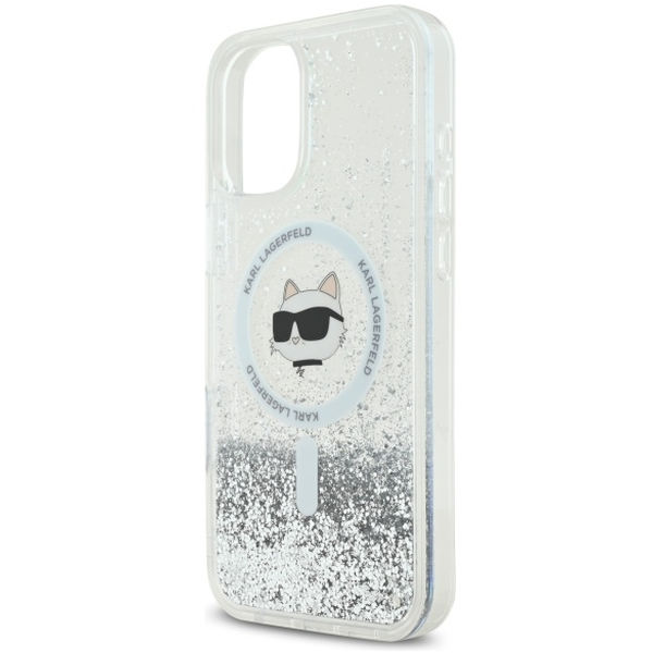 Alte variante pentru Karl Lagerfeld - Glitter Liquid MagSafe (KLHMP16SLGCHSGH) - iPhone 16 - Transparent Choupette Head