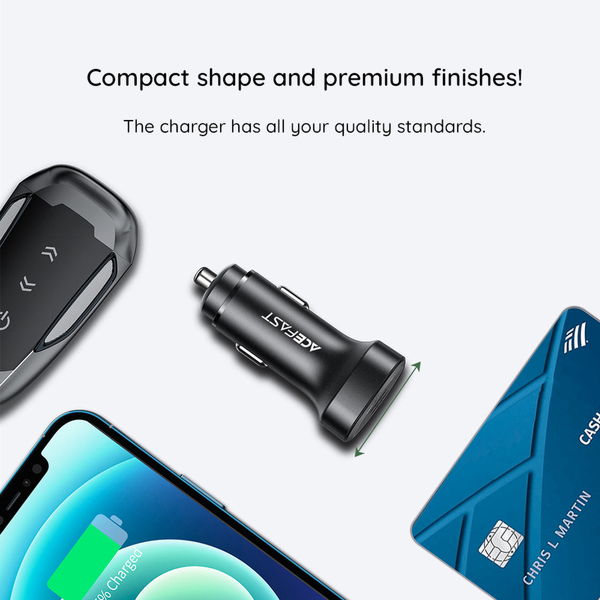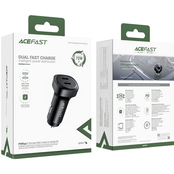 Acefast - Car Charger (B2) - 2x Type-C, Dual PD Fast Charging, 72W, Built-in Voltage Regulator Chip - Black Universal