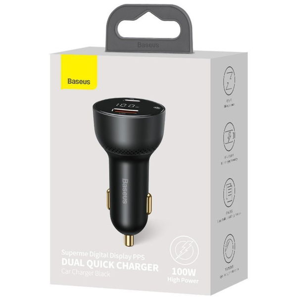 Baseus - Car Charger Supreme (CCZX-01) - USB, Type-C, Super Fast Charge Charge, 100W - Black Universal