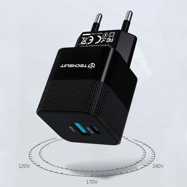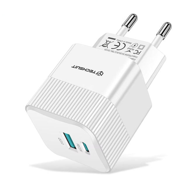 Techsuit - Premium Wall Charger Tiny Series (CHPD216) - GaN, USB QC3.0, Type-C PD25W - White Universal