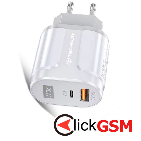 Accesoriu Techsuit - Wall Charger Premium (CHPD038) - USB-A, QC 3.0, USB-C, 20W - White pentru Universal