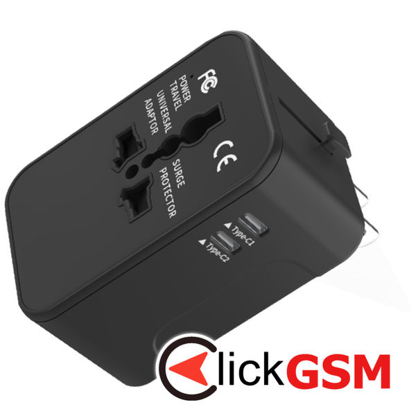 Accesoriu Techsuit - Travel Adapter (HHT202-2C) - 2 x USB-C, EU, UK, AUS, US - Black pentru Universal
