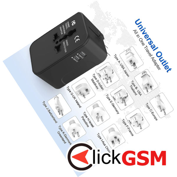 La ClickGSM găsești accesorii dedicate pentru Techsuit - Travel Adapter (HHT202-2C) - 2 x USB-C, EU, UK, AUS, US - Black (Retea), cu garanție de calitate și livrare rapidă pentru modelul Universal.