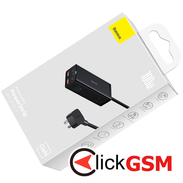 Baseus - Wall Charger/Powerstrip (PSZM000201) - 2 x AC, 2 x USB, 2 x Type-C, 100W with Cable Type-C - Black Universal
