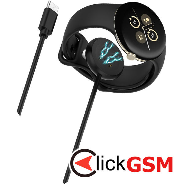 Techsuit - SmartWatch Wireless Charging Cable (THC5) - for Google Pixel Watch 3 (41mm, 45mm) / 2 / Fitbit Ace LTE, Type-C - Black Universal