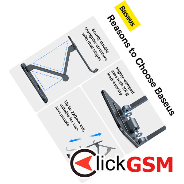 La ClickGSM găsești accesorii dedicate pentru Baseus - Desk Holder Biaxial (LUSZ000113) - for Tablets, Foldable, Aluminum Alloy - Grey, cu garanție de calitate și livrare rapidă pentru modelul Universal.