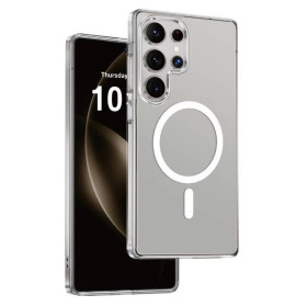 Husa de protectie din silicon semi transparent cu protectie din metal in jurul modulului de camere, compatibila cu sistemul MagSafe, pentru Samsung Galaxy A56 - Negru