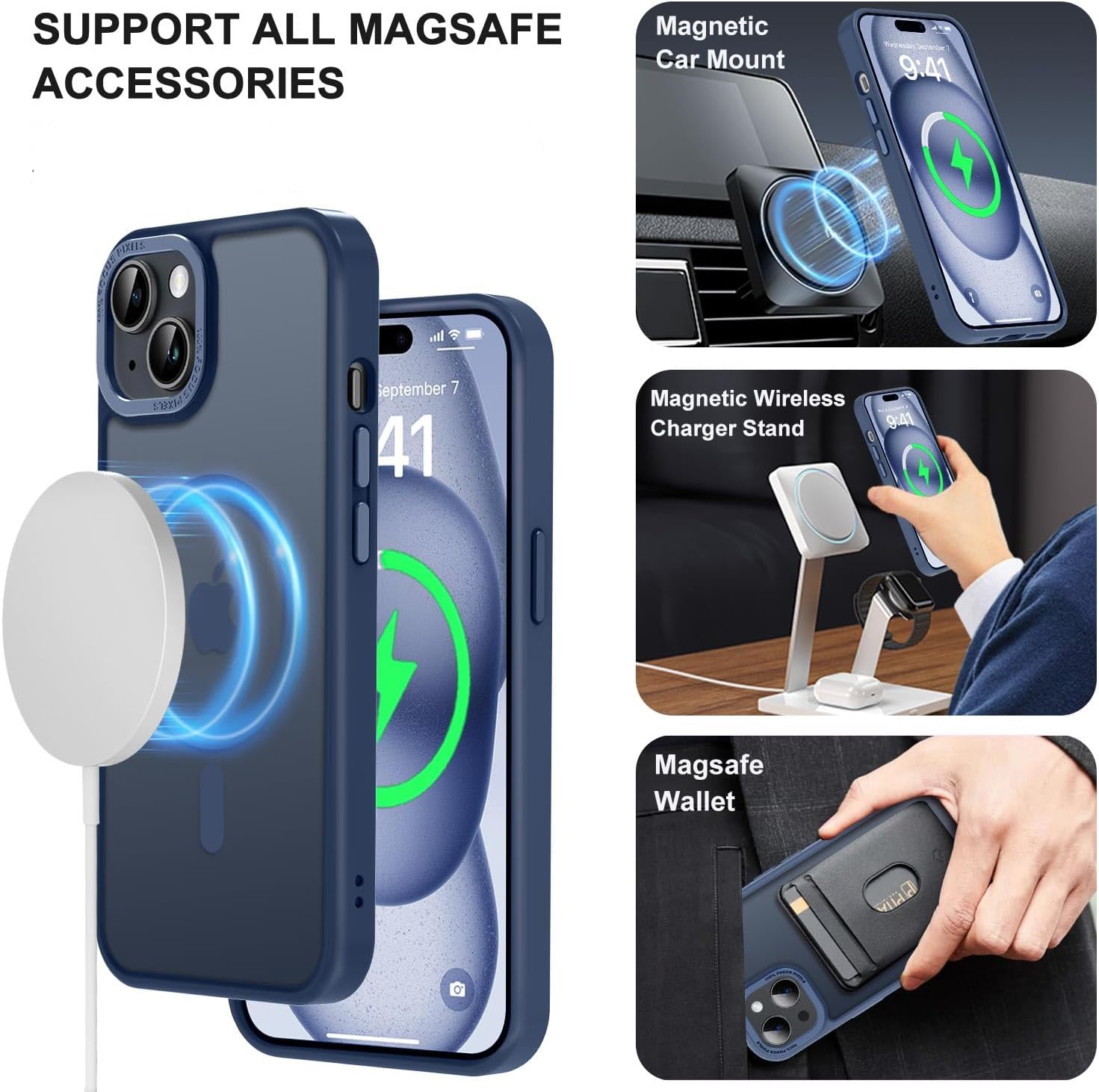 Husa Magnetica din Silicon Matte Transparent compatibila cu Apple iPhone 16 - Navy Blue