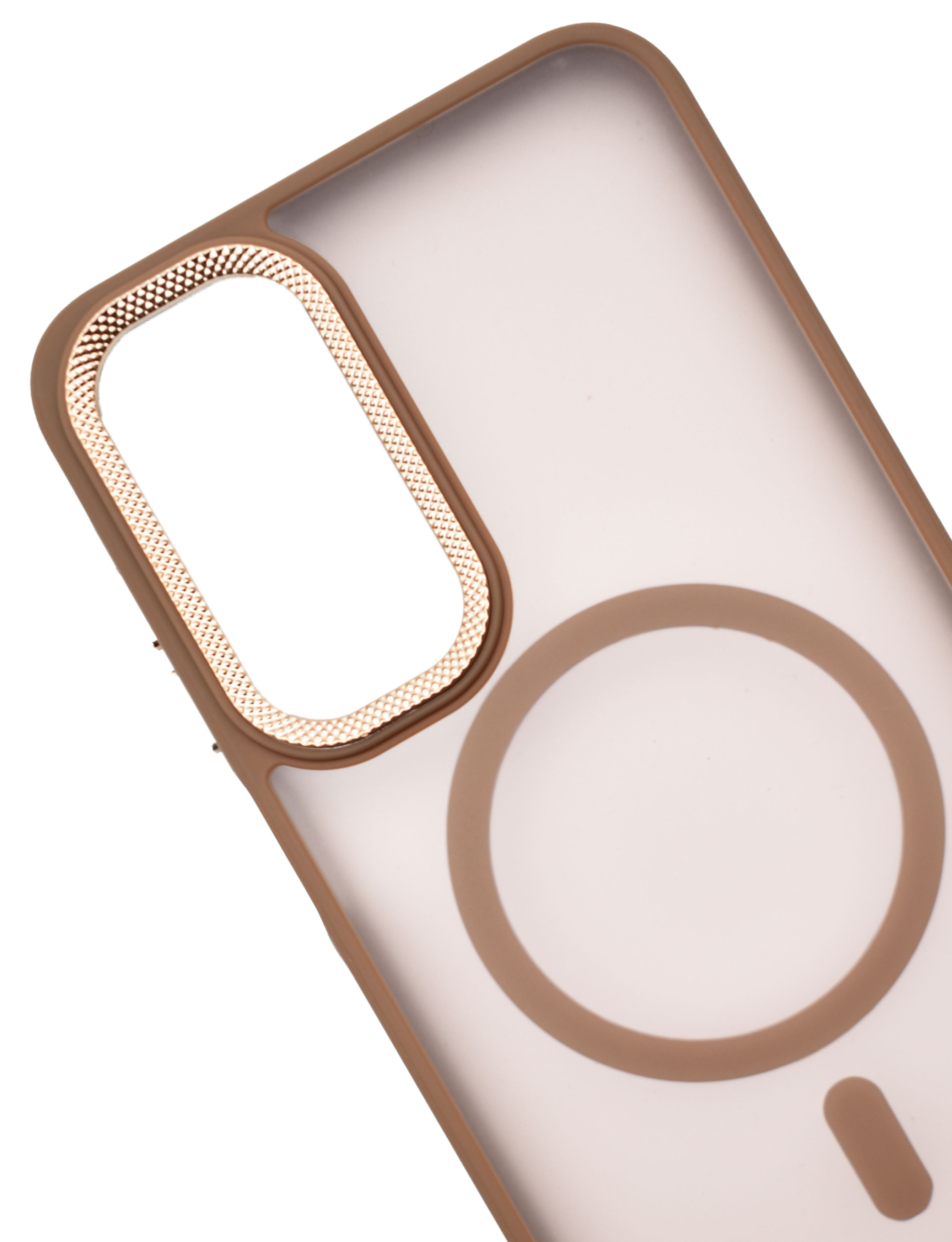 Husa de protectie din silicon semi transparent cu protectie din metal in jurul modulului de camere, compatibila cu sistemul MagSafe, pentru Samsung Galaxy A36 - Auriu