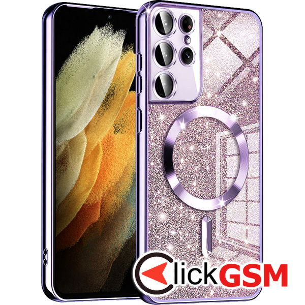 Accesoriu Techsuit - Luxury Glitter MagSafe - Samsung Galaxy S21 Ultra 5G - Light Purple pentru Samsung Galaxy S21 Ultra 5G